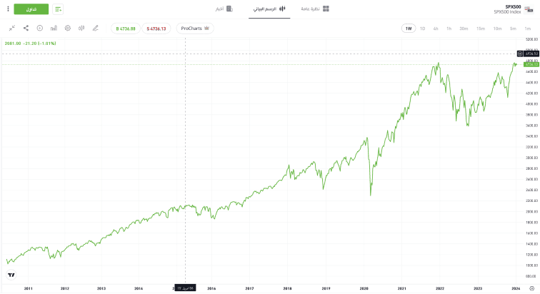 مؤشر S&P 500 لعام 2014-2023 (أرباح + 125٪) |