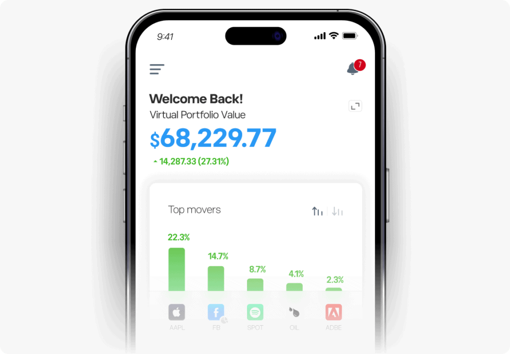 نعم، يُمكنك التداول على الأسهم في الوقت الفعلي باستخدام الحساب الافتراضي، الذي يعكس نفس ظروف السوق تمامًا مثل التداول الحقيقي على المنصة.