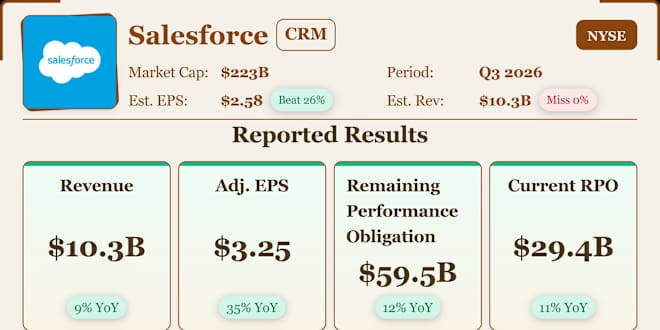 🚀 $CRM (Salesforce Inc) Q3 FY26 Earnings: Agentforce Just Went Nuclear! 🤖💥📈 🔥 Beat & Raised Hard • Revenue: $10.3B 🟢 (+9% YoY, slight beat) • Adj. EPS: $3.25 🟢 (crushed est. $2.86 by +14%!) • Operating Cash Flow: $2.3B (+17%) | FCF: $2.2B (+22%) 💰 🤖 Agentforce on Fire • Agentforce ARR:... عرض المزيد ترجم
