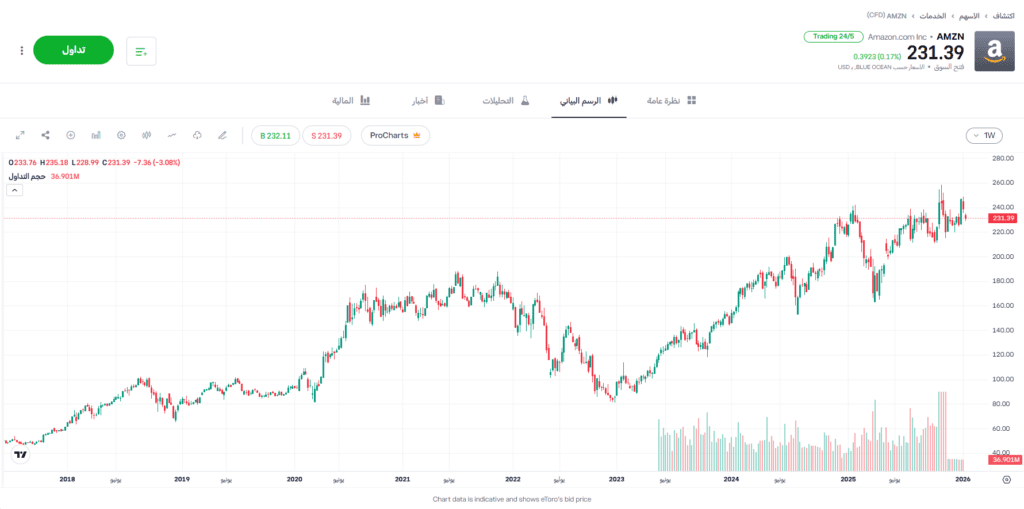 - الأسعار المستهدفة: يبلغ متوسط السعر المستهدف للمحللين لسهم أمازون 297 دولارًا، مع بعض التوقعات التفاؤلية التي تشير إلى أن السهم قد يتحدى مستوى 340 دولارًا بحلول نهاية عام 2026.