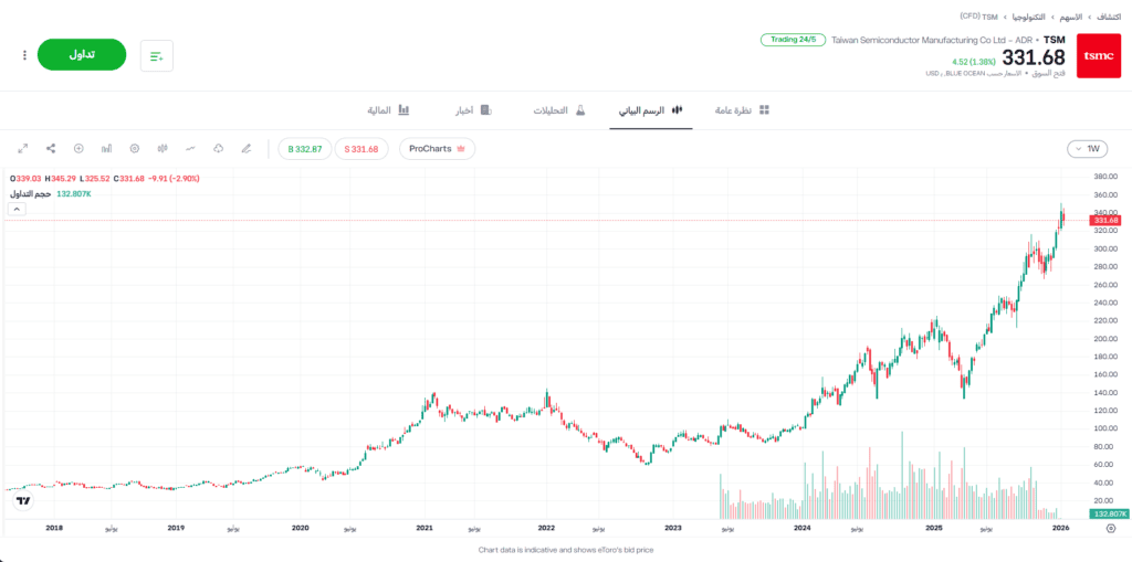 - هيمنة السبك: لا تزال الشركة تستحوذ على حصة تزيد عن 60% من سوق سبك أشباه الموصلات العالمي، وتعمل كمصنع رئيسي لمسرعات الذكاء الاصطناعي عالية الأداء لشركات مثل “إنفيديا” و”برودكوم”.