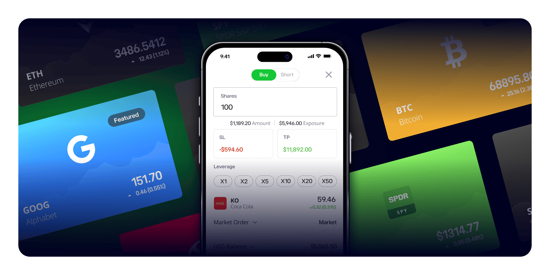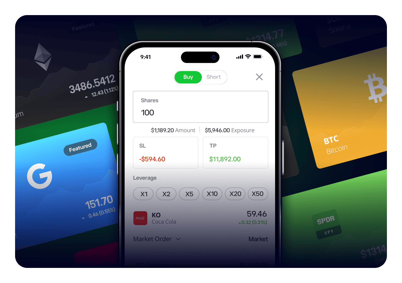 استخدم الرافعة المالية، وقم بالبيع على المكشوف، وتداول أصول متعددة باستخدام عقود الفروقات على منصة eToro المبتكرة وسهلة الاستخدام