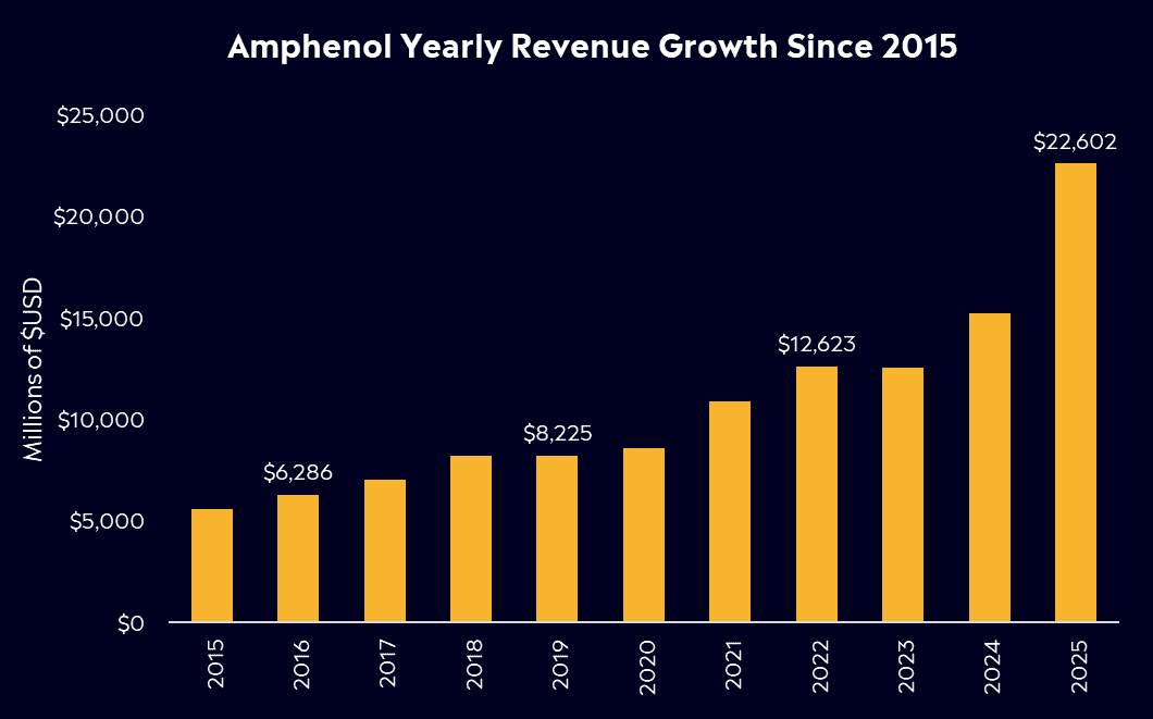 Fun Fact: Amphenol was founded in 1932 in a Connecticut garage. Today it operates in 40+ countries, quietly becoming one of the world’s most important manufacturers in the age of connected everything.