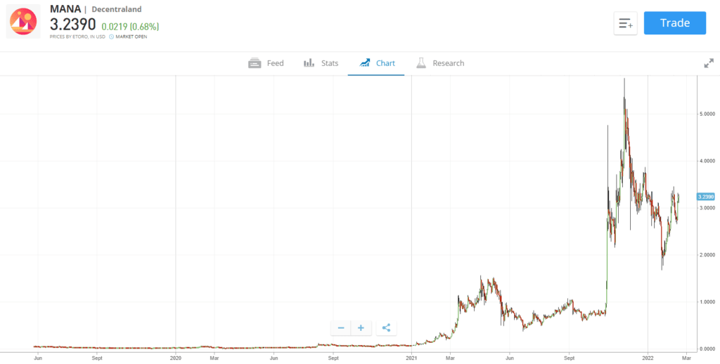 - Decentraland, which is quite similar to gaming platform Roblox, is one of the major ‘metaverse’ cryptoassets and it received a lot of attention in November last year, around the time Facebook announced that it would be focusing heavily on the metaverse going forward and changing its name to ‘Meta Platforms.’