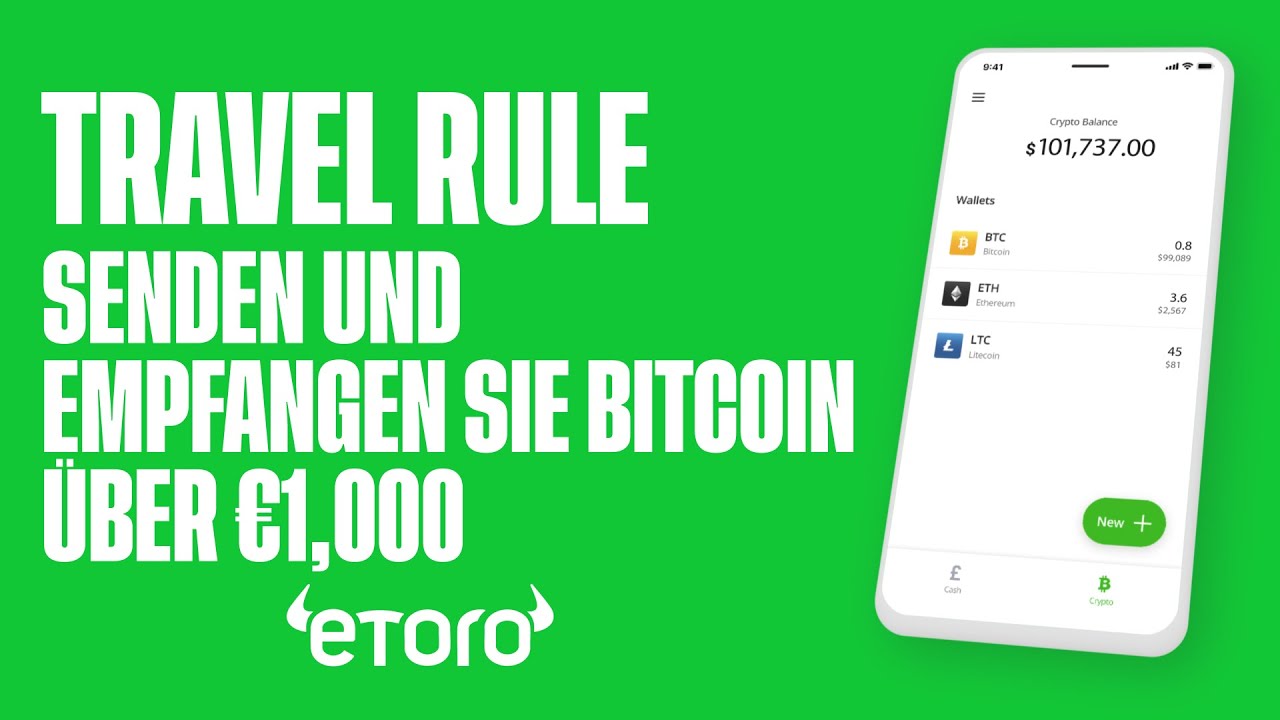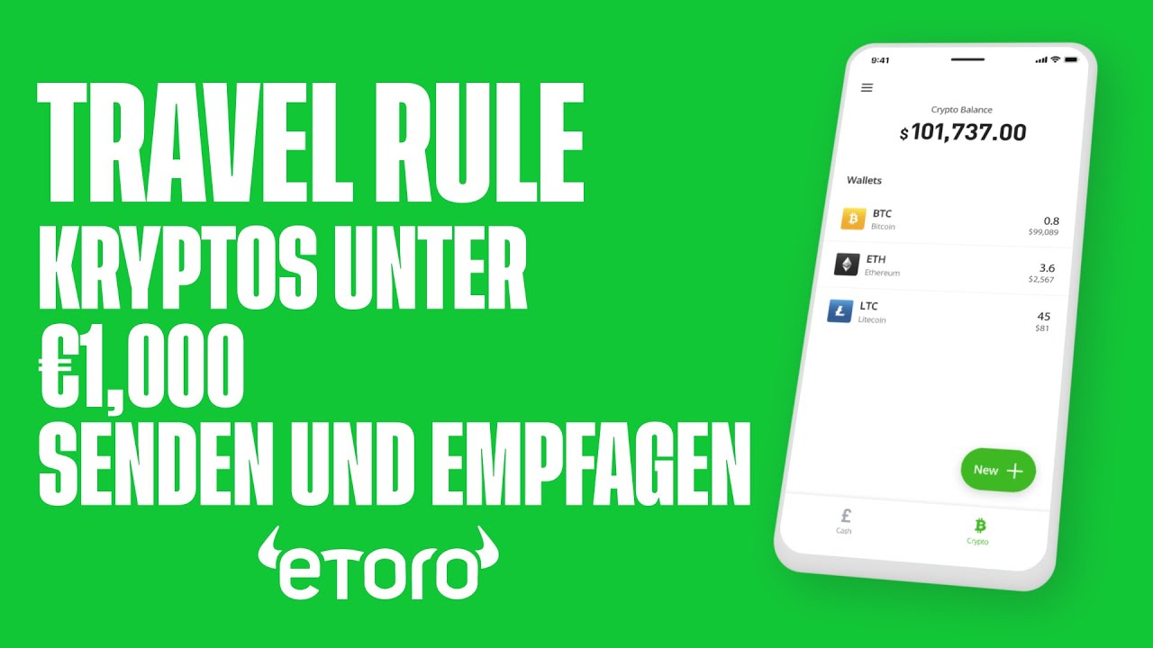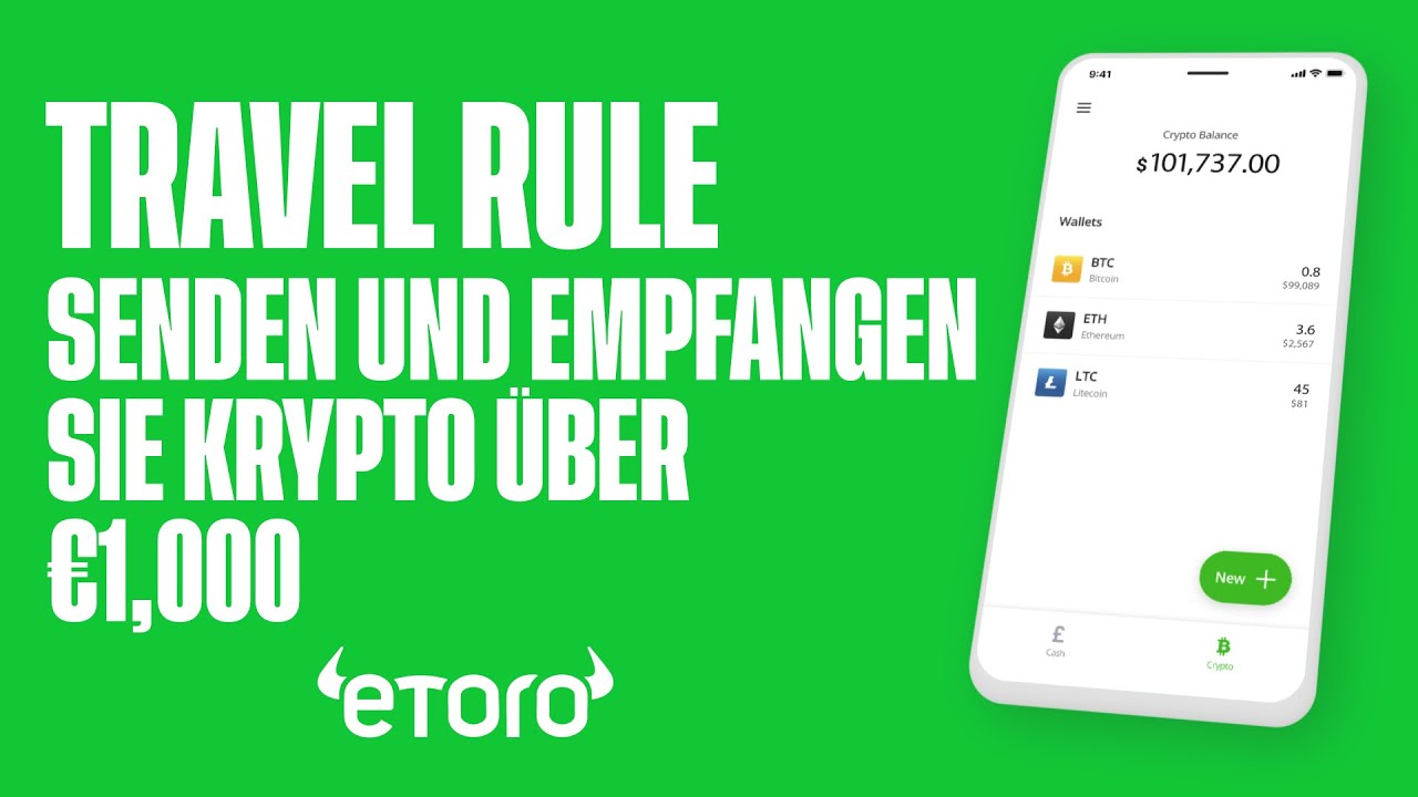 Sie gilt sowohl für das Senden als auch für das Empfangen von Kryptos und verpflichtet Krypto-Asset-Dienstleister (VASPs) wie eToro, grundlegende Informationen über Nutzer zu sammeln und weiterzugeben, wenn Kryptowährungen transferiert werden.