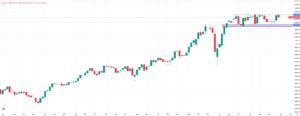 Der DAX erreichte in der vergangenen Woche ein neues Rekordhoch und kletterte am Donnerstag zeitweise auf 24.769 Punkte. Zum Wochenschluss kam es jedoch zu Gewinnmitnahmen, sodass der Aufwärtstrend nicht mit einem höheren Wochenschlusskurs bestätigt wurde. Der Index ist damit wieder in den Konsolidierungsbereich zurückgerutscht, der das Chartbild bereits seit Monaten prägt. Das vor vier Wochen verteidigte Fair Value Gap zwischen 23.152 und 23.337 Punkten bleibt die wichtigste Unterstützung. Solange diese Zone hält, ist der Trend intakt. Saisonale Faktoren und die technische Stärke sprechen für weiteres Kurspotenzial. Eine Annäherung an 25.000 Punkte erscheint in den nächsten Wochen möglich.