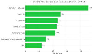 Der Durchschnitt wird allerdings durch Berkshire Hathaway deutlich verzerrt. Mit einem Forward-KGV von 22,8 fällt der US-Konzern klar aus dem Rahmen. Kein Wunder – Berkshire ist kein reiner Rückversicherer, sondern ein breit aufgestelltes Konglomerat mit einem starken Standbein im Versicherungsgeschäft. Die Reinsurance Group ist dabei ein zentraler und hochprofitabler Bestandteil, doch das hohe Bewertungsniveau reflektiert die gesamte Unternehmensstruktur und Diversifikation, nicht allein das Rückversicherungsgeschäft.