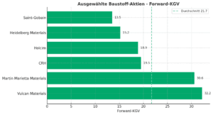 Forward-KGV von ausgewählten Baustoffaktien. Quelle: TICKR