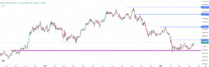 Seit dem Februar-Tief hat sich Bitcoin um rund 26 Prozent erholt, der Abstand zum Rekordhoch wurde auf etwa 40 Prozent reduziert – zwischenzeitlich lag er bei über 50 Prozent. Im Tageschart bewegt sich der Kurs seit rund zwei Monaten seitwärts. Positiv ist, dass der übergeordnete Abwärtstrend bislang nicht durch neue Tiefs bestätigt wurde.