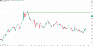 Der Verkehr in der Straße von Hormus ist nahezu zum Erliegen gekommen. Gleichzeitig stieg der Preis für die Ölsorte Brent am Montag zeitweise auf über 119 US-Dollar. Im Anschluss setzte jedoch eine kurzfristige Gegenbewegung ein, sodass sich der Anstieg etwa halbierte und aktuell bei rund 15 Prozent liegt (rund 107 US-Dollar). Ein Fair Value Gap aus dem Jahr 2022 wurde dabei respektiert. Seit Monatsbeginn ergibt sich ein Plus von 47 Prozent, gegenüber dem Dezember-Tief beträgt der Anstieg sogar 82 Prozent.