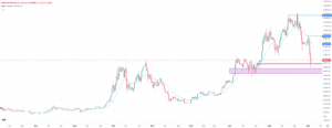 Im Bereich zwischen 63.800 und 64.500 Dollar wurde die Unterstützungszone – ein sogenanntes Fair Value Gap – angelaufen und bislang verteidigt. Das spricht zunächst für eine Stabilisierung und eröffnet die Chance auf eine kurzfristige Gegenbewegung. Sollte diese Zone jedoch brechen, rückt der nächste stärkere Support zwischen 52.500 und 58.400 Dollar in den Fokus. Dieser Bereich diente bereits 2024 mehrfach als Auffangzone.