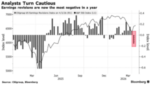Anleger sollten besonders auf den Ausblick achten. Entscheidend ist, ob das Management die Auswirkungen des Konflikts als temporär oder strukturell einordnet. Genau das macht die aktuelle Saison so heikel. Die Messlatte ist hoch, während die Risiken durch steigende Energiekosten eher nach unten zeigen. Auch der Citi US Earnings Revision Index signalisiert Vorsicht – die Gewinnrevisionen sind so negativ wie seit einem Jahr nicht mehr. Gleichzeitig sind Aktien niedriger bewertet als Ende 2025, aber nicht wirklich günstig. Das Forward-KGV des S&P 500 liegt bei 20,4 nach 22,0 im Dezember, wie Daten von FactSet zeigen. Das könnte erklären, warum einige Anleger wieder selektiv einsteigen, obwohl das Umfeld unsicher bleibt.