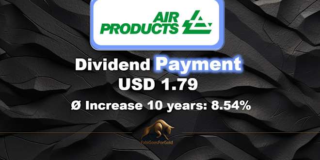💰 New week, new dividend payment! AirProducts is paying a quarterly dividend of 1.79 USD to all shareholders today. This corresponds to a current dividend yield of 2.75%. Airproducts has been growing it's dividend uninterruptedly for 43 years now! This makes the company to one of the most reliable... Mehr anzeigen Übersetzen
