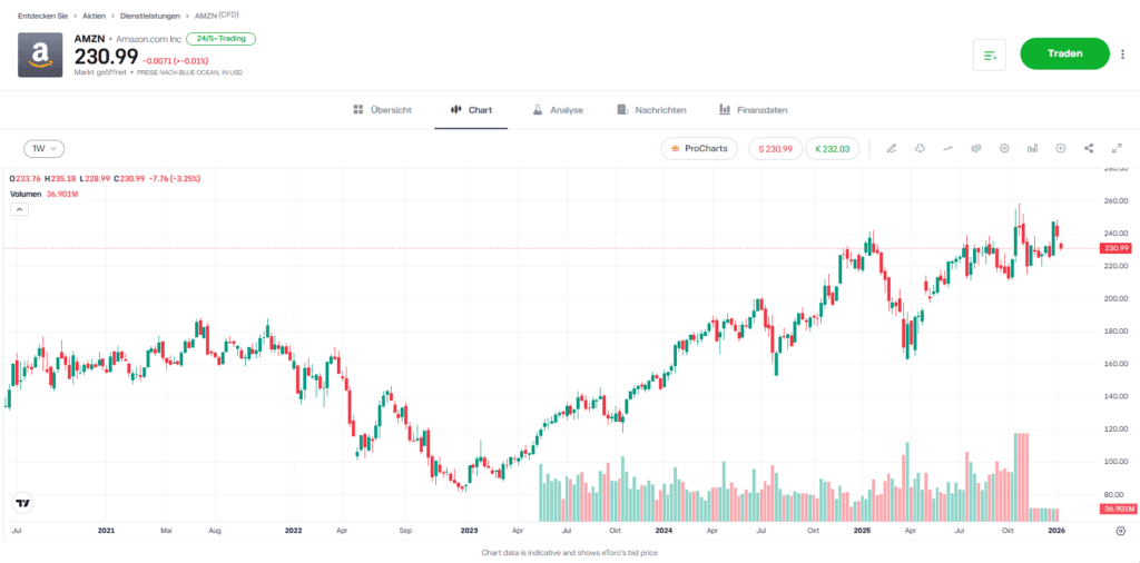 Amazon befindet sich in einem außergewöhnlich umfangreichen Investitionszyklus. Für die Jahre 2025 und 2026 hat der Konzern Kapitalausgaben von rund 125 Milliarden US-Dollar vorgesehen, um seine Position im globalen Markt für KI-basierte Cloud-Infrastruktur weiter auszubauen.