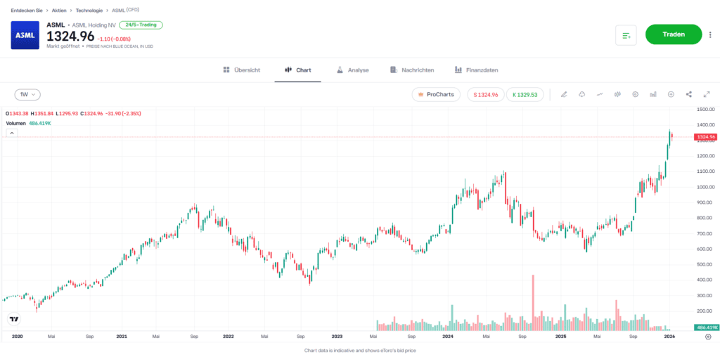 - Langfristiger Umsatzpfad: Analysten erwarten, dass ASML bis 2030 einen Jahresumsatz von rund 44 bis 60 Milliarden Euro erreichen könnte. Das Jahr 2026 wird dabei als Startpunkt für diese nächste Wachstumsphase eingeordnet.