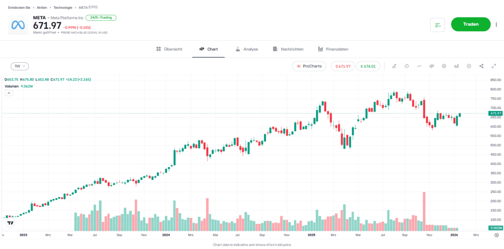 - Starke Cashflow-Entwicklung: Meta hat sich zu einem bedeutenden freien-Cashflow-Erzeuger entwickelt. Analysten rechnen für die kommenden vier Jahre mit einem durchschnittlichen jährlichen Gewinnwachstum von rund 12,5 %.