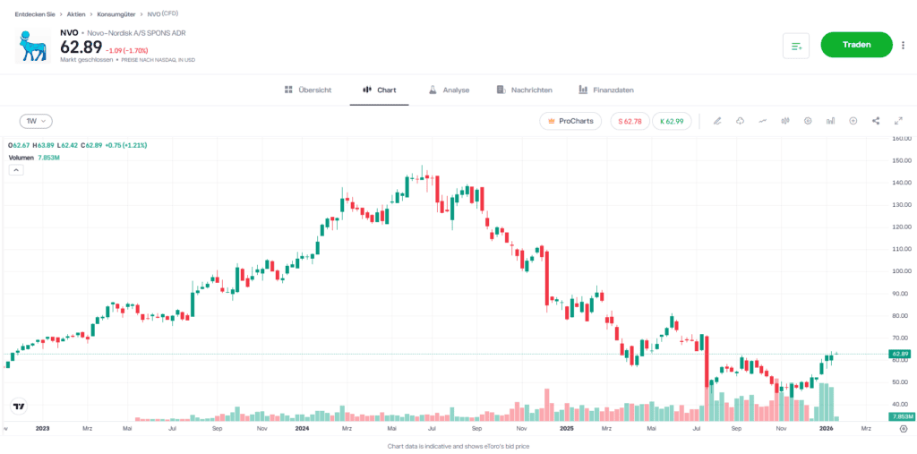 Novo Nordisk ist ein bedeutender Anbieter im globalen Markt für Adipositas-Behandlungen, der bis 2030 auf ein Volumen von rund 100 Milliarden US-Dollar geschätzt wird. Die Geschäftstätigkeit des Unternehmens ist dabei eng mit langfristigen Entwicklungen im Bereich metabolischer Erkrankungen verknüpft.