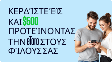Γίνετε μέλος του eToro σήμερα και αρχίστε να ανακαλύπτετε μια μεγάλη ποικιλία από οφέλη, στην εφαρμογή για κινητά ή στην web πλατφόρμα: