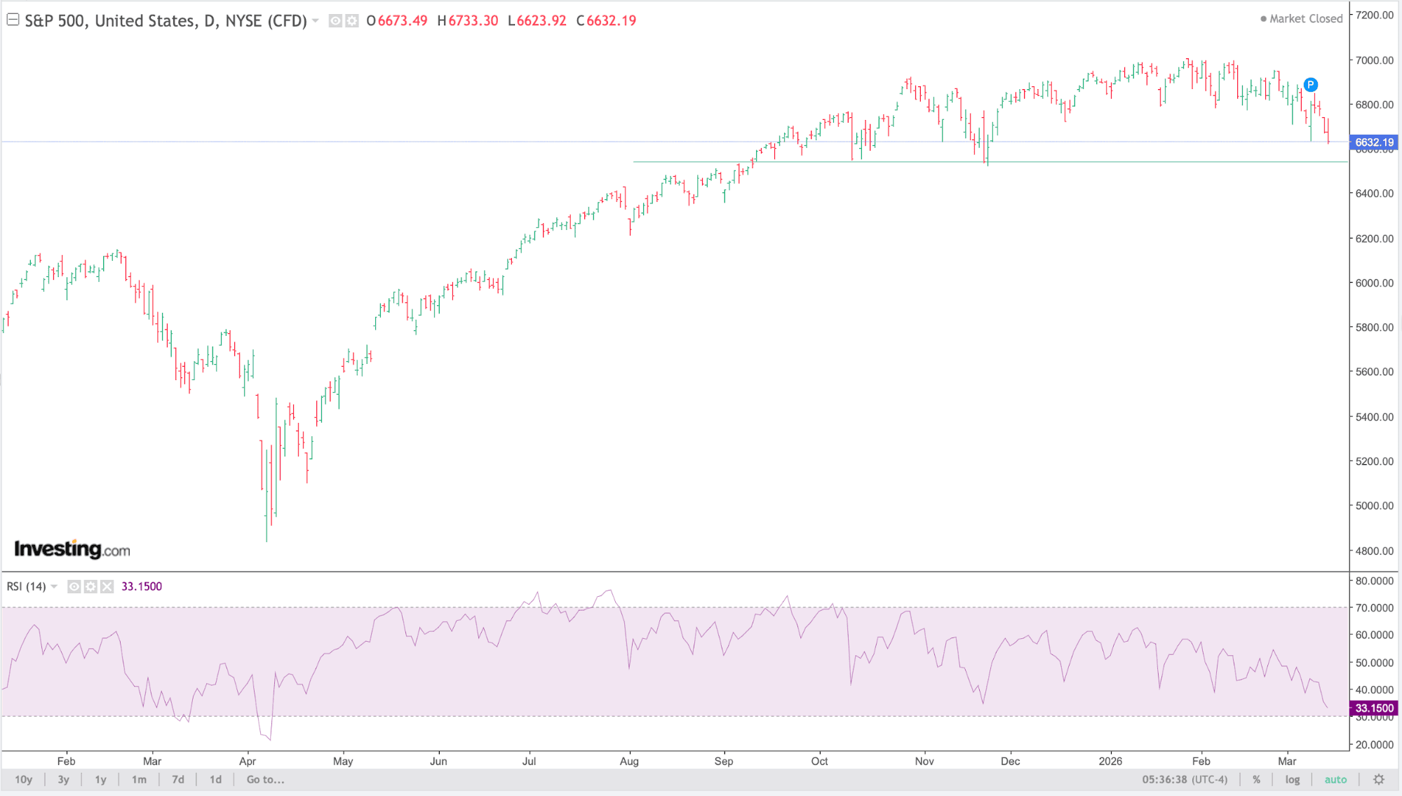 Desde el punto de vista técnico, el SP500 muestra una estructura que sigue siendo alcista en términos de tendencia de fondo, pero con señales claras de pérdida de momentum en el corto plazo. Tras la fuerte recuperación iniciada en primavera del año pasado, el índice ha entrado en una fase más lateral en los últimos meses, moviéndose dentro de un rango relativamente definido mientras el mercado digiere valoraciones elevadas, política monetaria incierta y tensiones geopolíticas.