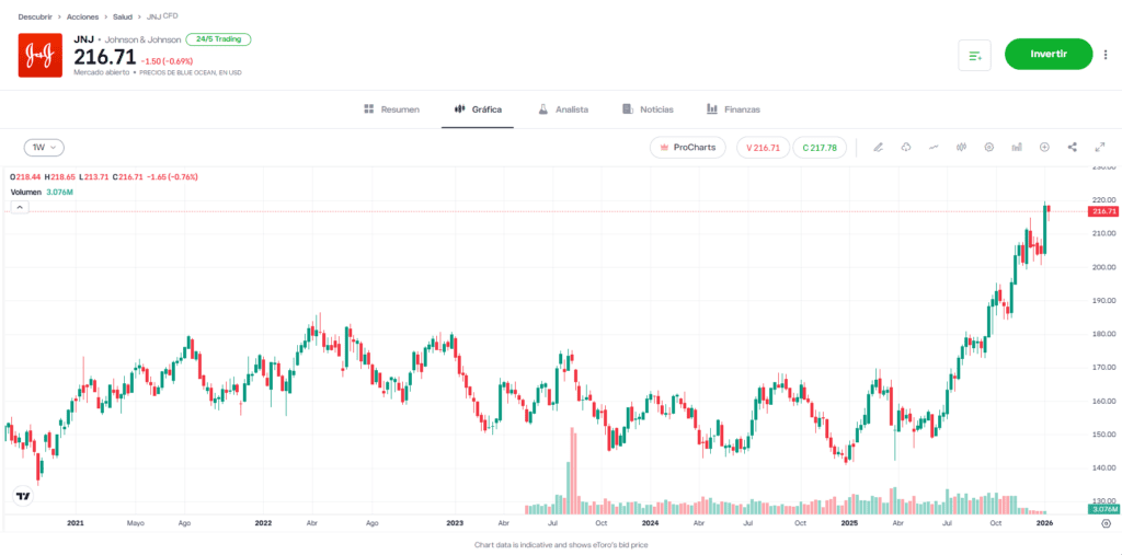 Johnson & Johnson entra en 2026 como un “Dividend King” (Rey del Dividendo) de primer nivel, habiendo incrementado su dividendo anual durante más de 60 años consecutivos, demostrando una resiliencia operativa excepcional.