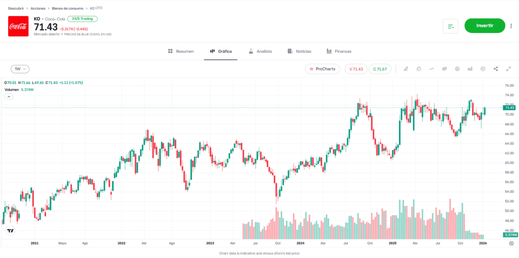 - Activo defensivo: Coca-Cola actúa como un activo defensivo que muestra resiliencia en periodos de corrección general o desaceleración económica.