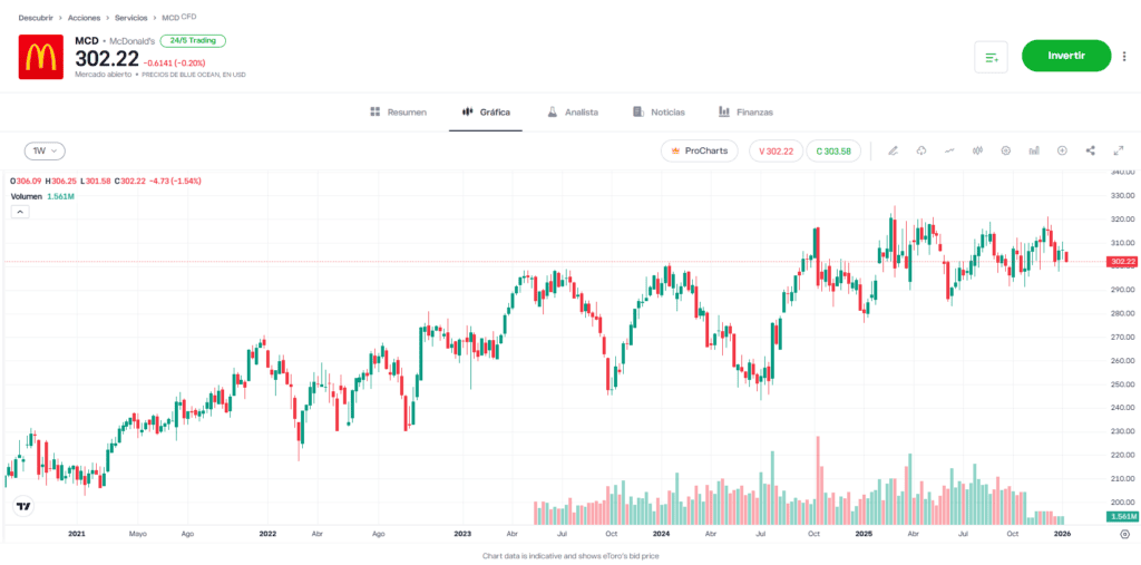 - Dividendo: La acción ofrece un dividendo de entre el 2,2 % y 2,4 % con base en su modelo de franqucias.