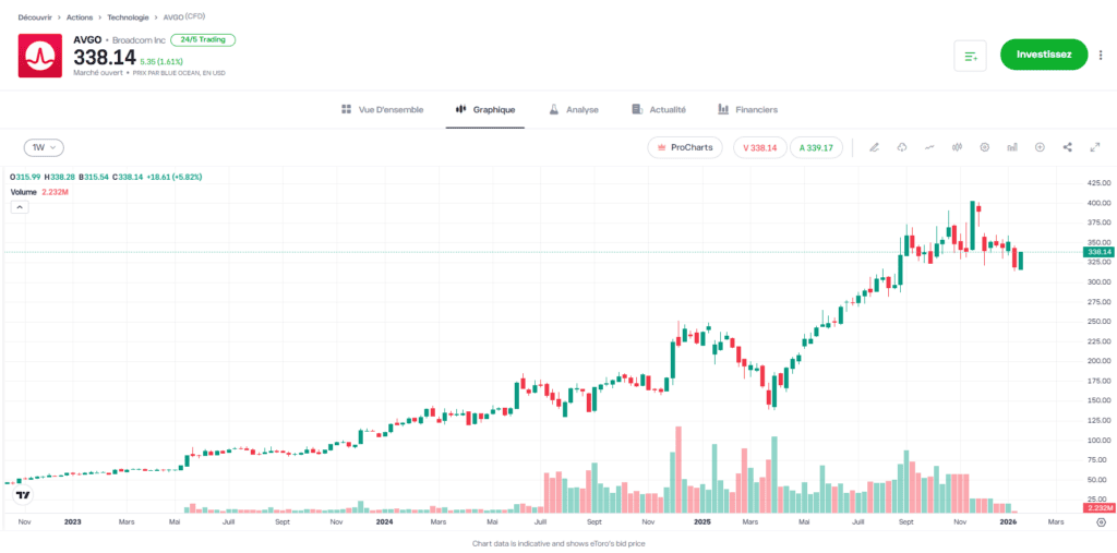 - Risques associés : le risque principal réside dans la prime de valorisation élevée souvent attribuée au titre, ce qui peut entraîner une forte volatilité si la croissance trimestrielle ralentit, même légèrement.