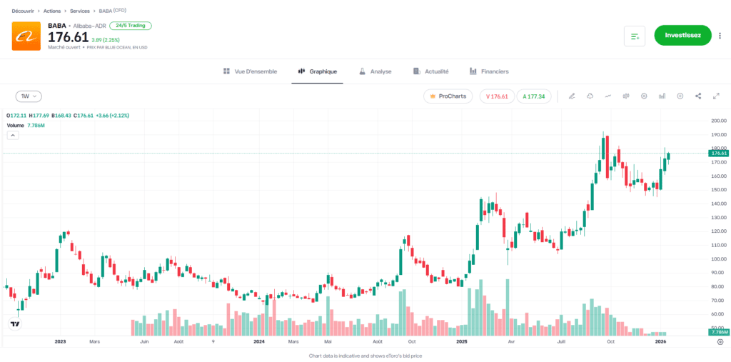 - Pour les investisseurs de l’UE, Alibaba offre un placement à “bêta” élevé sur la numérisation de l’économie orientale et l’expansion des services de cloud basés sur l’IA.