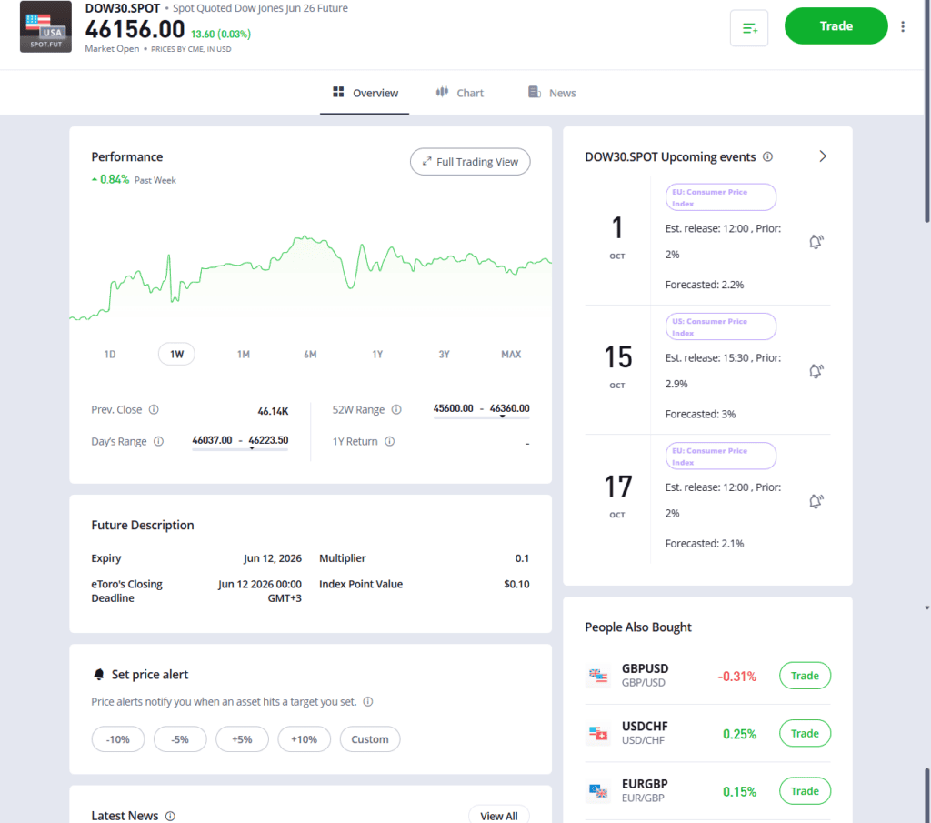 - Règlement en espèces – Tous les contrats futures sur eToro sont réglés en espèces, éliminant le risque de négocier par erreur des futures à livraison physique.