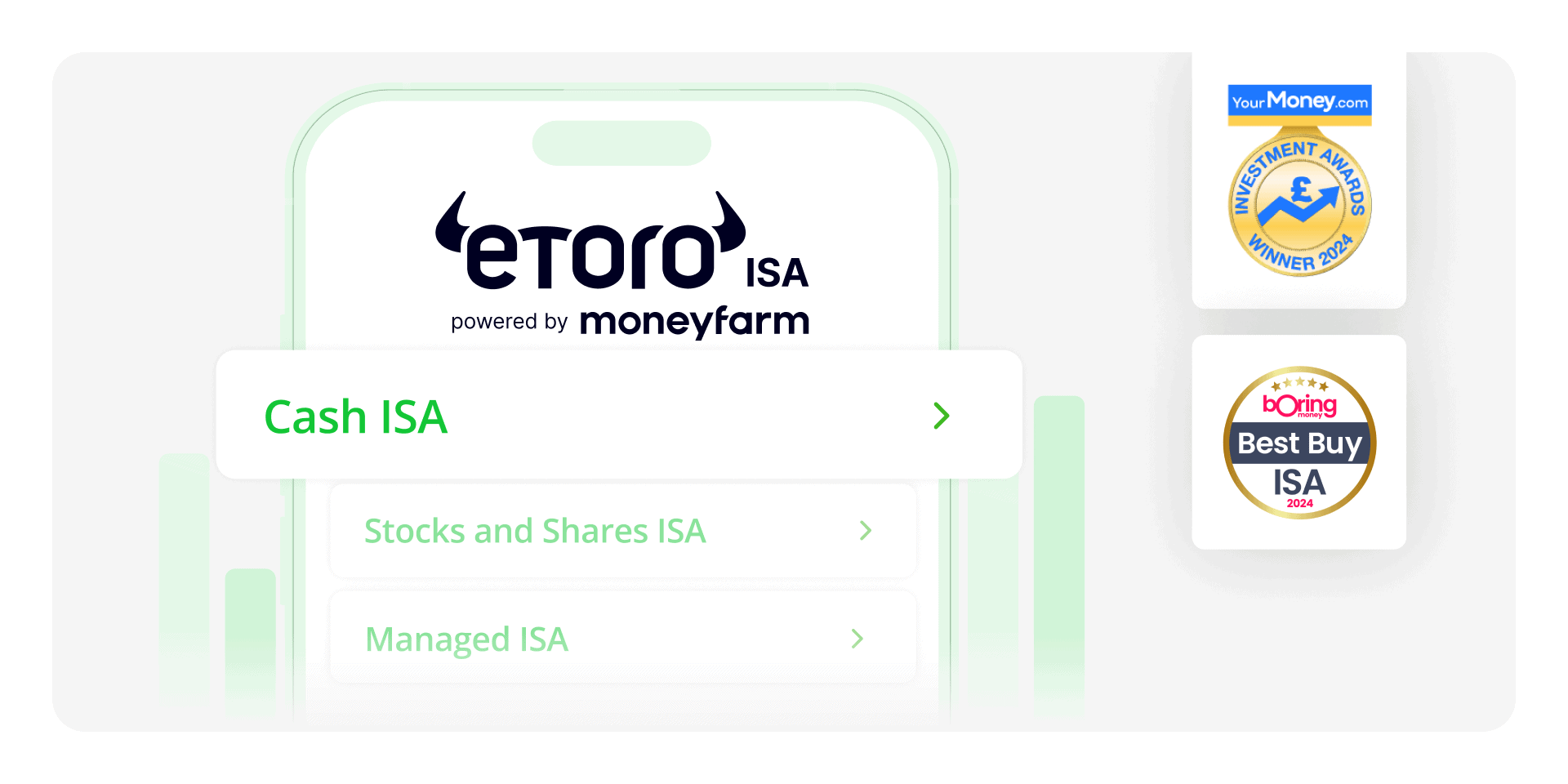 Yes. eToro offers a Stocks and Shares ISA in the UK, with both DIY and Managed options in partnership with Moneyfarm — open online and keep everything in one app. You can also transfer existing ISAs.