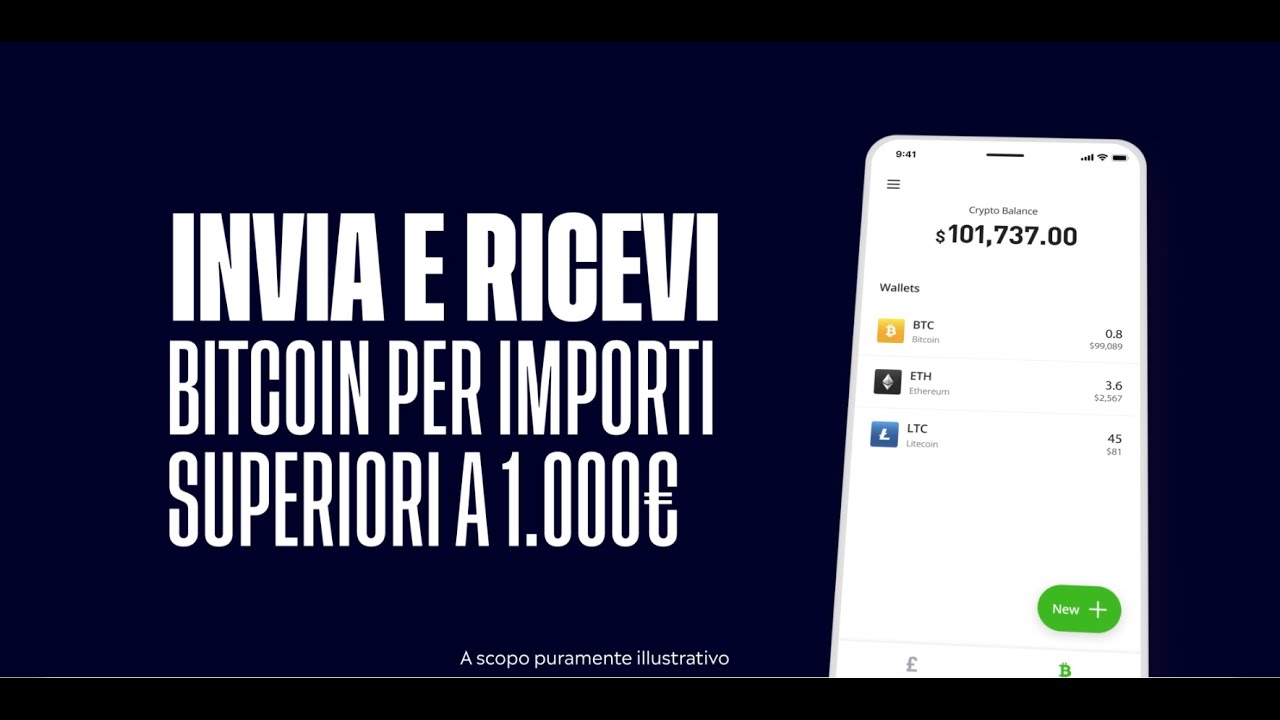 - Invio di BTC quando si invia ֵun valore superiore a 1.000€ dell’asset