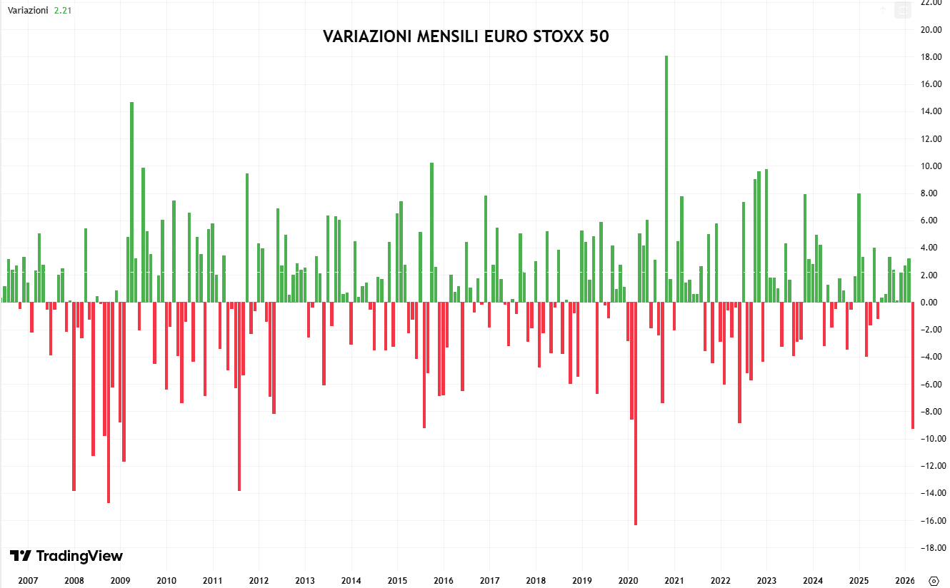 Marzo 2026 resterà impresso come uno di quei mesi che ridefiniscono il campo di battaglia dei mercati, il peggiore per l’Europa (indice Euro Stoxx 50) da quel fatidico marzo 2020 in cui il COVID aveva spezzato ogni illusione di stabilità.