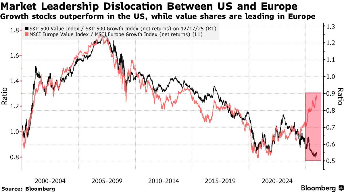 Selezione tra value e growth, con il primo a correre in Europa e il secondo a dominare negli Stati Uniti, una divergenza strutturale che rompe le mappe del passato.