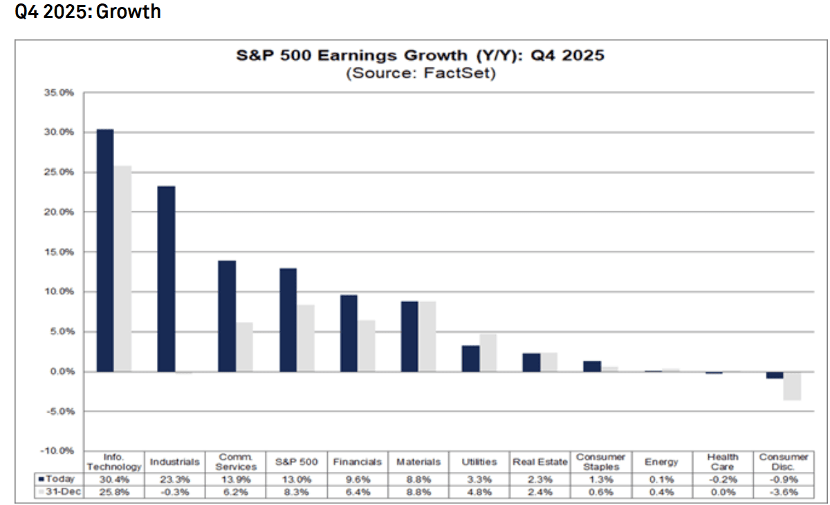 Ed è qui che diventa fondamentale chiarire un equivoco. Questa compressione non nasce da un deterioramento degli utili. Anzi. La stagione delle trimestrali è solida. L’S&P 500, dati FactSet, sta viaggiando verso una crescita degli utili intorno al 13%, ben sopra l’8% stimato a fine dicembre. Le sorprese positive sono diffuse, le revisioni forward continuano a salire, e il forward EPS a 12 mesi è aumentato mentre il prezzo dell’indice è leggermente sceso. In altre parole, il denominatore cresce. Eppure, il multiplo scende. Questo significa una cosa molto precisa. Il mercato non sta penalizzando gli utili, sta rifiutandosi di pagarli come prima.