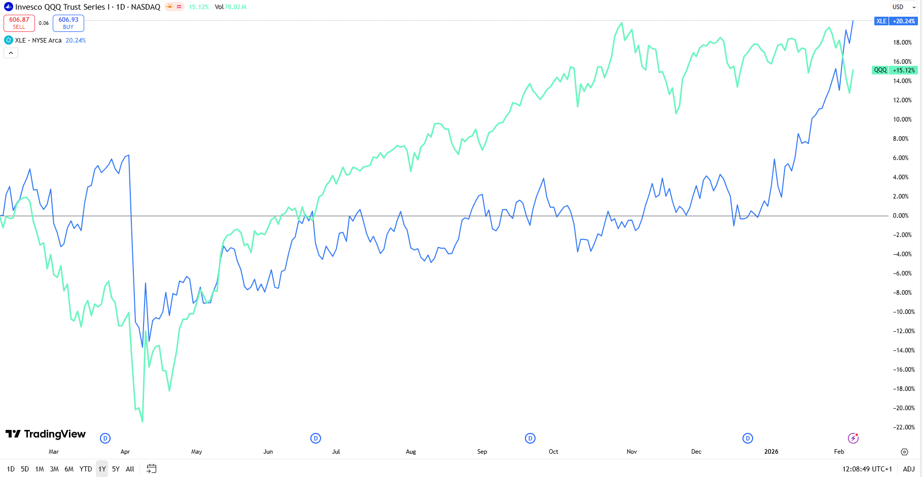 La rotazione settoriale conferma che non siamo in una fase di risk-off, ma di risk selection. I consumi difensivi tengono anche quando il beta torna di moda. L’energia torna centrale, non come trade tattico ma come infrastruttura del nuovo ciclo. L’AI consuma energia, e il confronto tra QQQ e XLE lo ricorda senza bisogno di grandi discorsi. Il tema power, i deal con gli hyperscaler e la sostenibilità dei prezzi non sono ciclici, sono strutturali.