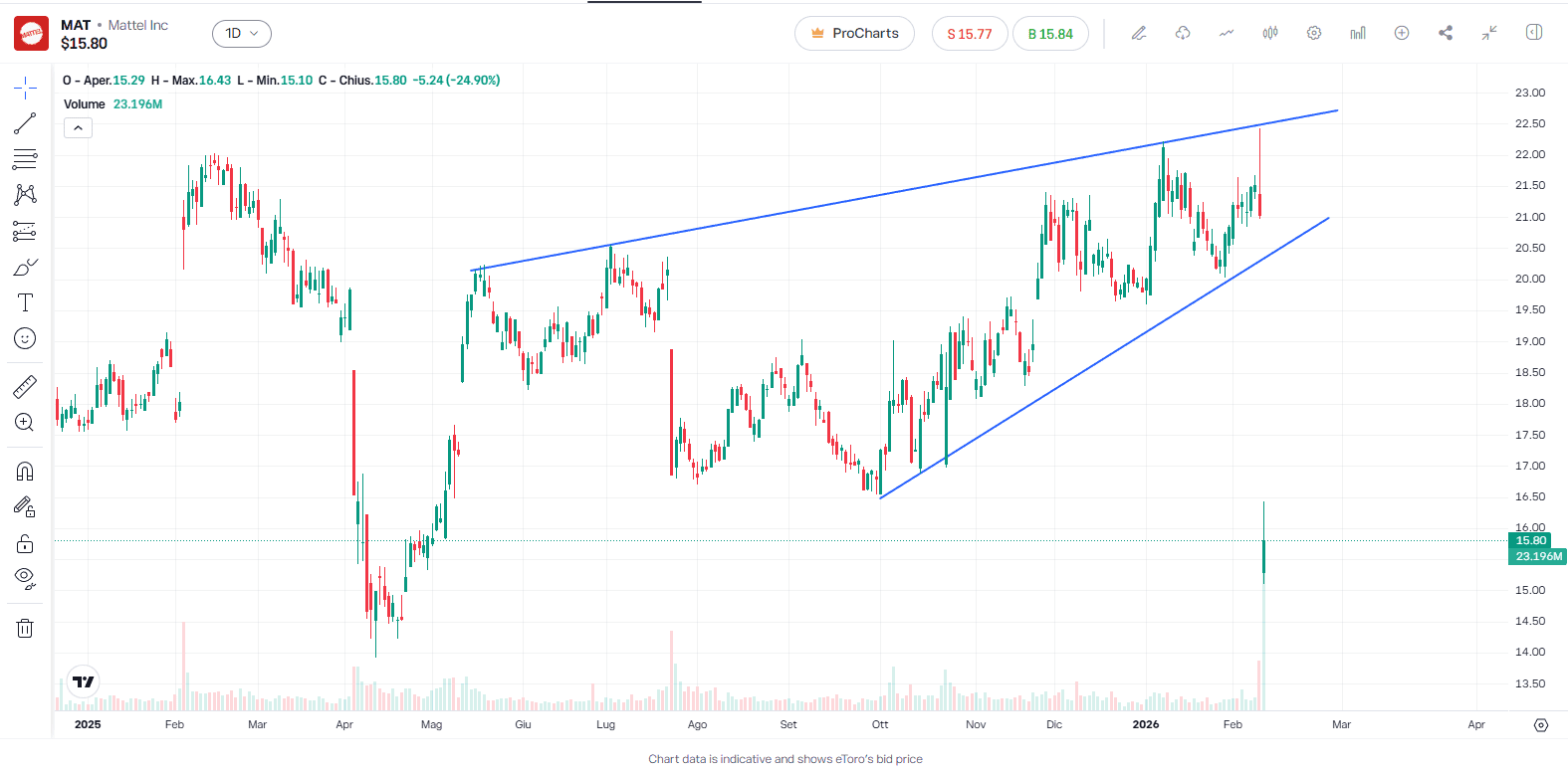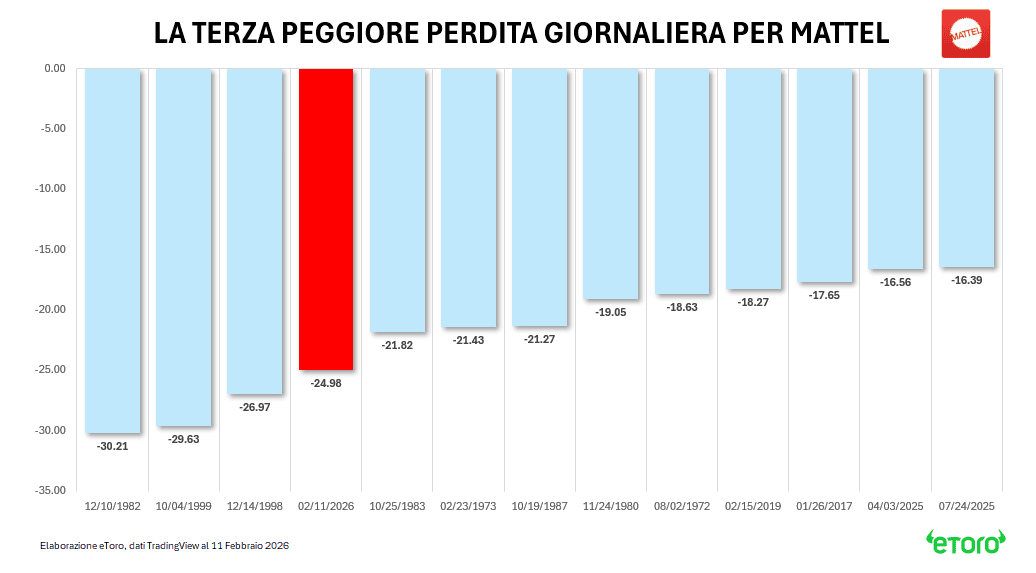 Per Mattel, quel momento è arrivato la sera del 10 febbraio 2026, quando il mercato ha deciso che la storia che il management raccontava da trimestri non valeva più il prezzo del biglietto. Da diversi trimestri la strategia era chiara, investimenti sul brand, sull’espansione dell’IP, sul digitale, con la promessa implicita che queste scelte avrebbero rafforzato la crescita e la redditività nel medio periodo. Il mercato, questa volta, ha deciso di non anticipare più quel futuro.