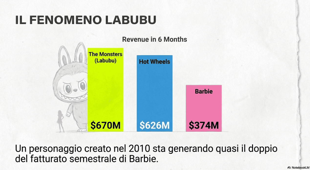 Nel primo semestre 2025, Pop Mart ha generato ricavi per 13,88 miliardi di RMB (circa $2,5 miliardi annualizzati), in crescita del 204%. L’utile netto è esploso del 396,5%. Il margine lordo ha raggiunto il 70,3%. La serie The Monsters, dove Labubu è protagonista, ha prodotto 4,81 miliardi di RMB (~$670 milioni) in sei mesi, con una crescita del 668%. Per dare un termine di paragone: in quello stesso semestre, Barbie ha venduto $374 milioni di giocattoli e Hot Wheels $626 milioni. Un singolo personaggio di un’azienda nata nel 2010 ha superato, in termini di fatturato semestrale, i due brand più iconici del più grande toymaker americano.