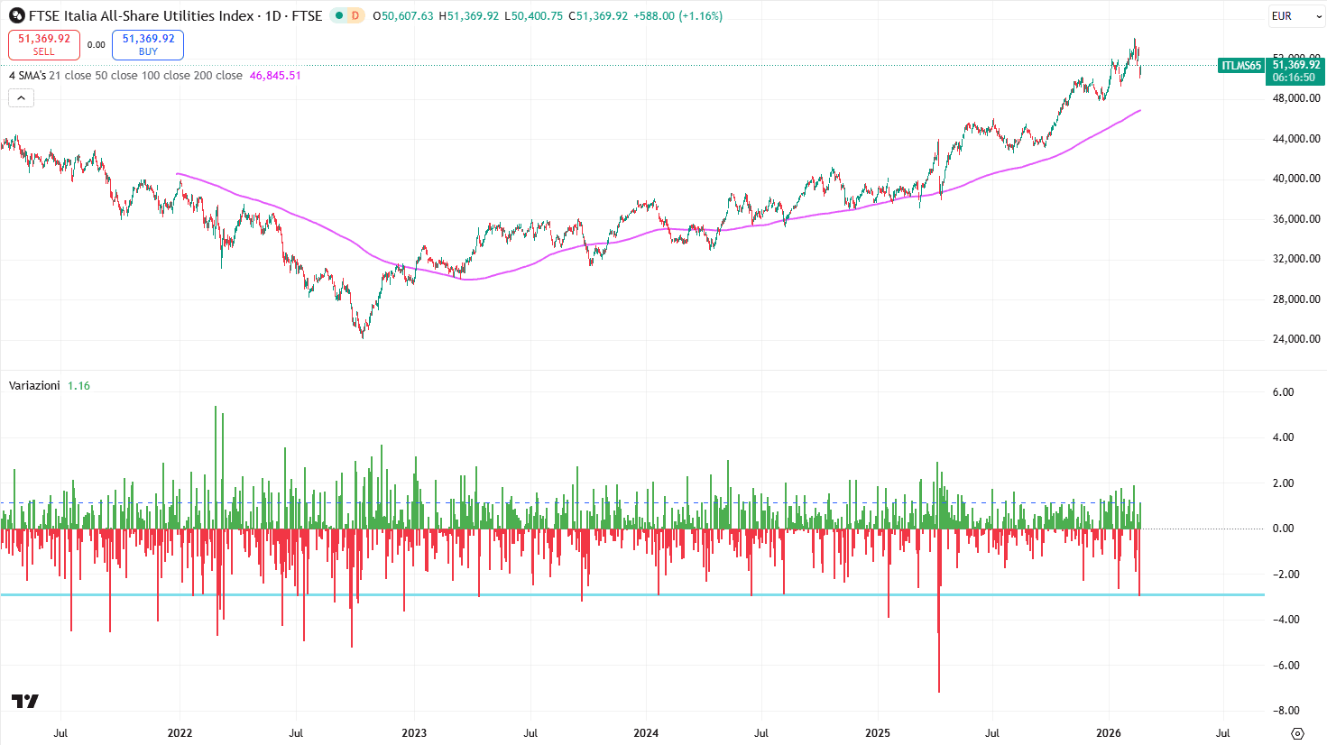 Eppure, quando il 18 febbraio il decreto è diventato ufficiale, il 19 il mercato ha comunque sentito il bisogno di vendere. FTSE Italia All-Share Utilities -2,93%. FTSE MIB -1,22%. Un movimento che, preso isolatamente, non ha nulla di eccezionale. Cali simili per l’indice italiano delle utilities si sono verificati il 4 e 7 aprile 2025, il 20 gennaio 2025, il 14 giugno 2024 e il 21 settembre 2023, solo per citarne alcune. Una statistica che non grida allo shock.