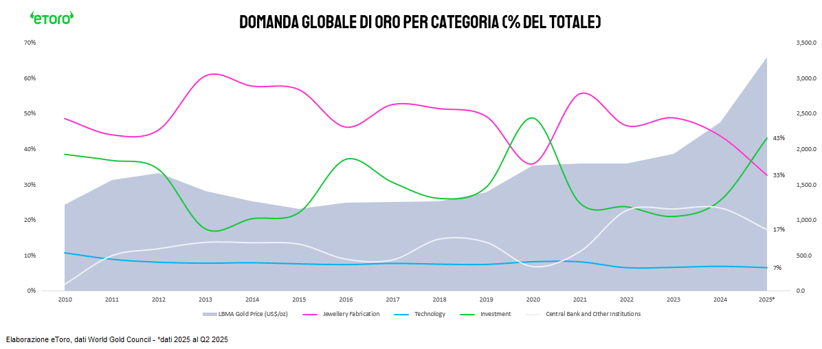 L’oro si muove per tre grandi forze: la domanda strategica delle banche centrali, la domanda finanziaria degli investitori e la domanda tattica degli speculatori.