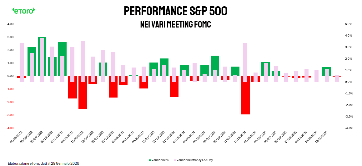 Il mercato ha colto perfettamente questa sfumatura. Il dissenso è stato letto come un segnale di sensibilità interna verso un allentamento futuro, non come l’anticamera di una spaccatura. Anche perché il linguaggio del comunicato, leggermente più prudente sul fronte inflazione, ha compensato l’elemento più “morbido” dei voti contrari. Il risultato è stato un meeting a somma zero, senza reazioni strutturali su azioni, bond o dollaro. Non a caso, la variazione intraday nella seduta di ieri sullo S&P 500 è stata la più bassa dall’ultimo meeting di novembre 2024.