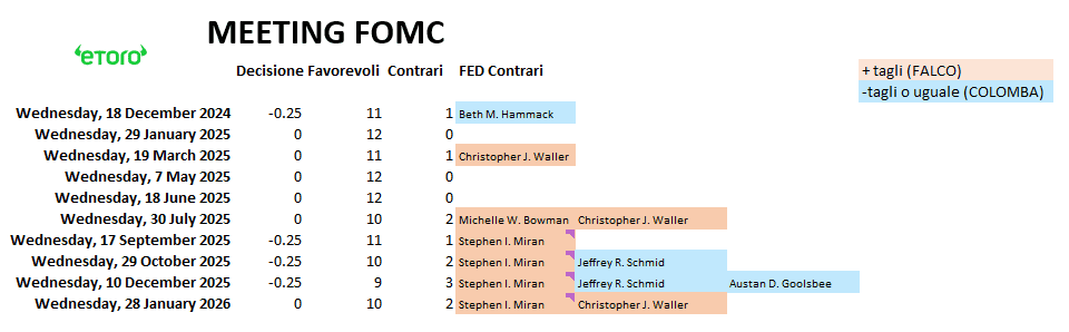 In questo contesto si inseriscono i due voti contrari di Miran e Waller, entrambi favorevoli a un quarto taglio consecutivo immediato. Un dettaglio non banale, ma neppure uno shock. Una dinamica simile si era già vista a luglio, quando la decisione sui tassi fu sostanzialmente un nulla di fatto, ma Bowman e Waller chiesero comunque un taglio. Anche allora il segnale non fu quello di una Fed spaccata, bensì di un Comitato che iniziava a ospitare sensibilità diverse sul timing, non sulla direzione finale della politica monetaria.Da settembre in poi, il dissenso ha assunto una forma ancora più strutturata. Con l’ingresso di Stephen Miran proprio in quel meeting, il fronte dei contrari è diventato costante. Miran ha votato contro in tutte le riunioni successive, inclusa quella di ieri. Non perché la Fed stesse sbagliando diagnosi macroeconomica, ma perché, dal suo punto di vista, il rischio maggiore era quello di attendere troppo prima di normalizzare ulteriormente la politica monetaria. Il dissenso, quindi, non nasce da una lettura alternativa dell’economia, ma da una diversa ponderazione dei rischi, agire troppo presto contro agire troppo tardi.