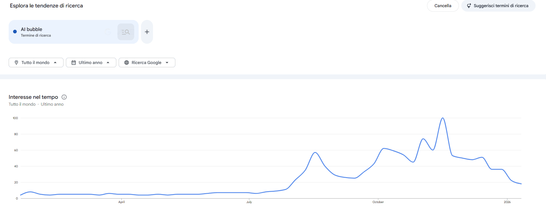 L’apertura del 2026 ci consegna un quadro che definire schizofrenico sarebbe un eufemismo, una dissonanza cognitiva dove il frastuono dei titoli di giornale si scontra con l’assordante silenzio della volatilità sui mercati azionari. Gli operatori, che fino a ieri sembravano ossessionati dalla caccia alla “bolla dell’AI”, hanno bruscamente spostato l’attenzione, tanto che le ricerche su Google del termine sono crollate, quasi a suggerire che la vera bolla fosse la paura stessa della bolla. Eppure, l’azionario mostra una calma olimpica, quasi a voler sfidare la gravità, ignorando quello che è il vero cambio di fase strutturale, il passaggio da una globalizzazione imperfetta a un mercantilismo esplicito, dove i dazi sono usati come leva negoziale su territori strategici e la politica economica entra a gamba tesa su credito, mutui e banche centrali.