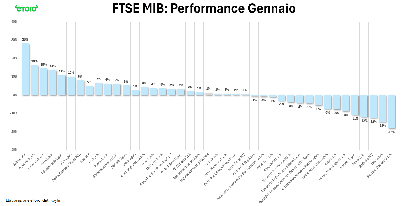 Il primo mese del nuovo anno si chiude in territorio positivo sui mercati finanziari, ma con una dinamica tutt’altro che lineare. Gennaio è stato un mese di rialzo, sì, ma attraversato da oscillazioni violente, rotazioni improvvise e segnali di tensione crescenti sul finale. Più che un mese direzionale, diciamo come è stato un mese rivelatore o meglio un test di stress mascherato da rialzo.