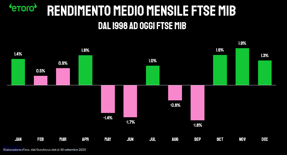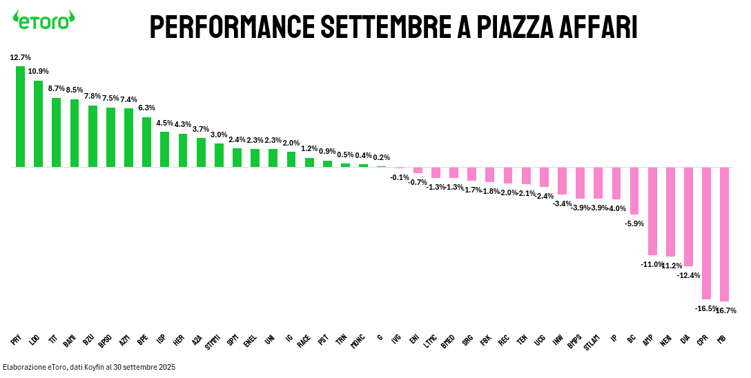 Il FTSE MIB ha chiuso settembre con un progresso dell’1,25%, miglior settembre dal 2019, spezzando una sequenza di cinque mesi di settembre consecutivi in rosso.