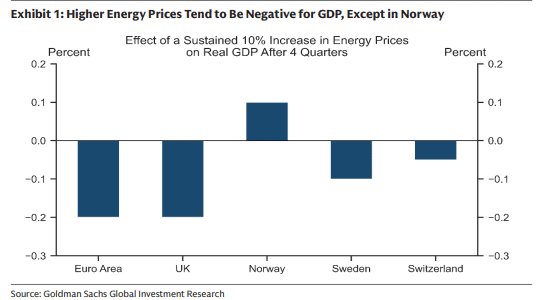 Il gas europeo, TTF, ha registrato un balzo fino a circa +39%. Il brent del 6,68%. Di contro il WTI USA +6,3%, mentre il gas Henry Hub un +3,53%. È qui che si apre la frattura. L’Europa è importatore netto di gas e petrolio. Ogni aumento dei prezzi è un peggioramento. È crescita che si assottiglia e inflazione che torna a bussare. Non è una sensazione, è meccanica macro. Un moltiplicatore negativo. Importa energia, importa inflazione, importa fragilità. Goldman stima che un +10% medio di oil e gas possa sottrarre circa lo 0,2% di PIL all’Eurozona nell’arco di quattro trimestri. Negli Stati Uniti, un aumento di 10 dollari al barile riduce la crescita di circa 0,1 punti percentuali, e meno di 0,05 se lo shock è temporaneo.