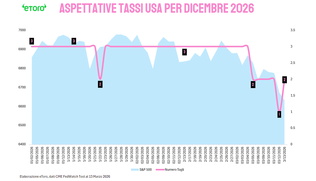 Mercoledì sera sarà il turno della Federal Reserve. Il mercato si aspetta tassi invariati nel range 3,50%-3,75%, ma l’attenzione sarà tutta sulle nuove proiezioni economiche e sulla conferenza stampa di Jerome Powell. Se all’inizio dell’anno il mercato prezzava tre tagli dei tassi entro dicembre 2026, nelle ultime settimane le attese si sono compresse fino a sfiorare anche l’ipotesi di un solo taglio, per poi risalire verso due riduzioni entro fine anno. In altre parole, il mercato sta già dicendo che il problema non è tanto il livello attuale dei Fed Funds, quanto il rischio che il petrolio renda più lento, più incerto e più stretto il percorso di allentamento monetario.