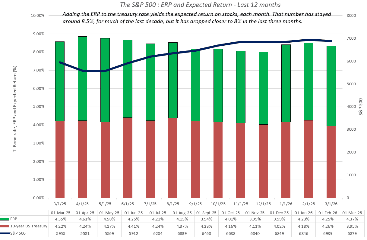 E qui entra l’ultimo elemento, quello che chiude il quadro. L’Equity Risk Premium. I dati Domodoran mostrano un ERP intorno al 4,3-4,4%, in crescita rispetto ai livelli di fine 2025, quando era più vicino al 4%. Il rendimento atteso complessivo sull’equity si mantiene poco sopra l’8%, ma con una traiettoria in leggero aumento del premio richiesto mese dopo mese. Non siamo in un contesto di stress sistemico, ma il mercato sta gradualmente alzando l’asticella. Non chiede un premio esplosivo per il rischio, ma sta diventando più selettivo su ciò che è disposto a pagare. Non è il rischio a essere esploso. È la tolleranza al rischio a essere diminuita.