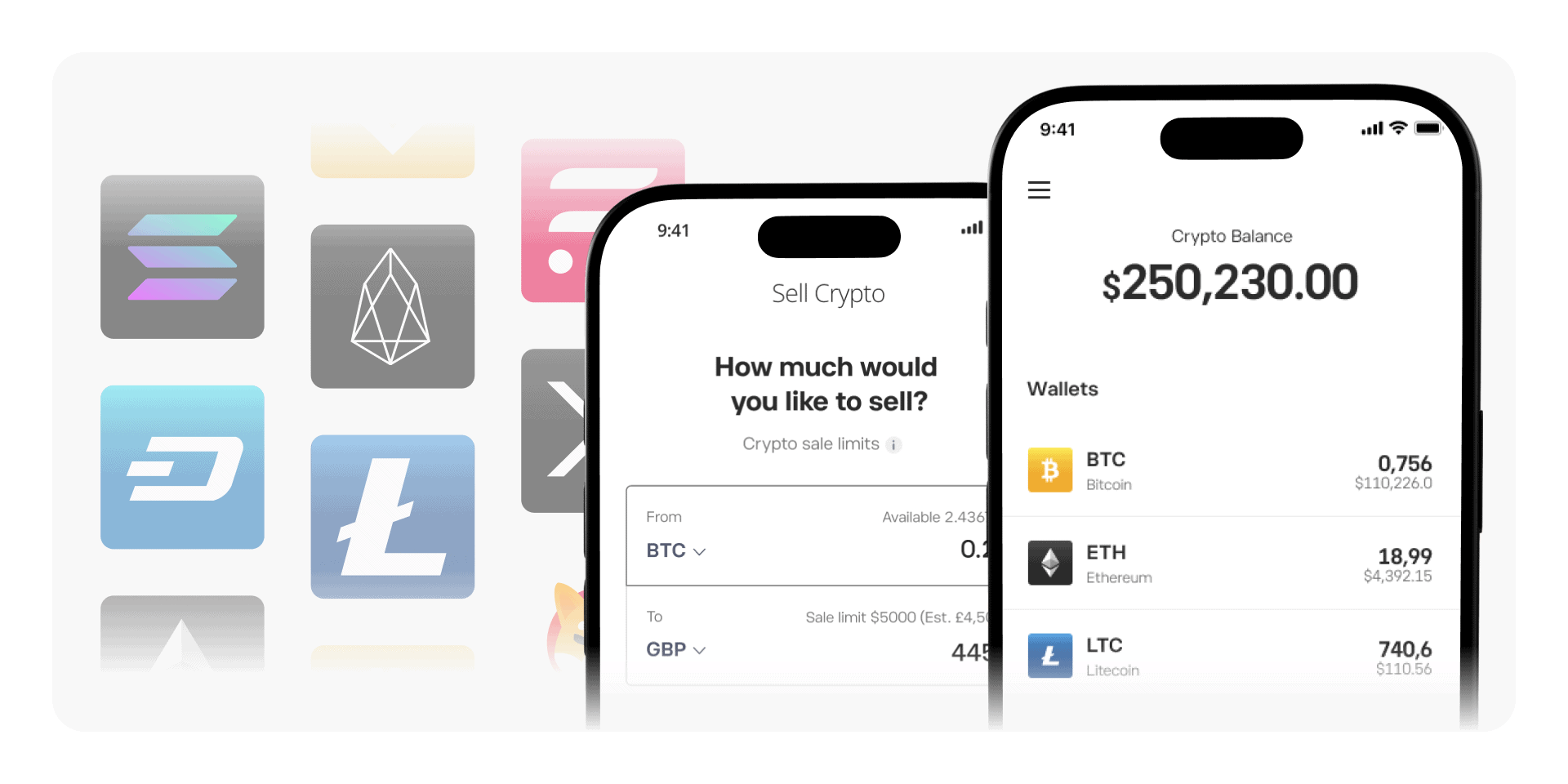 Send, motta og selg støttet krypto direkte fra mobilen din.