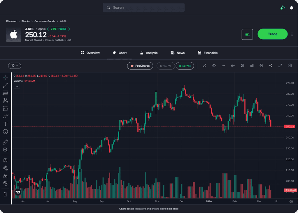 Hvordan bruker jeg TradingView-diagrammer på eToro?