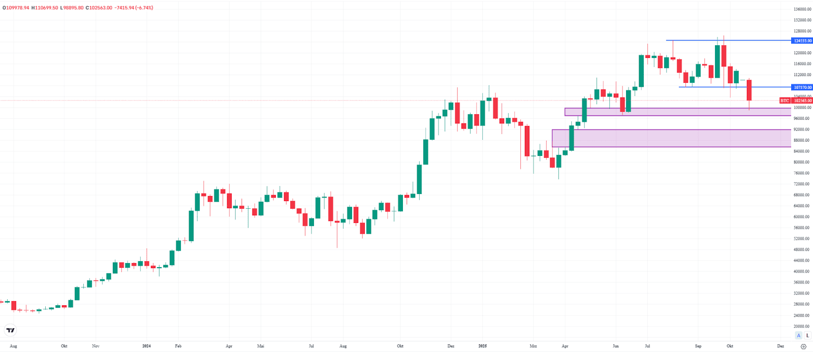 The long-term uptrend remains intact. In the short term, however, the chart would only improve if Bitcoin regains the broken support at $107,370. If the $96,950 level fails, the next major support zone could come into focus between $85,600 and $91,920.